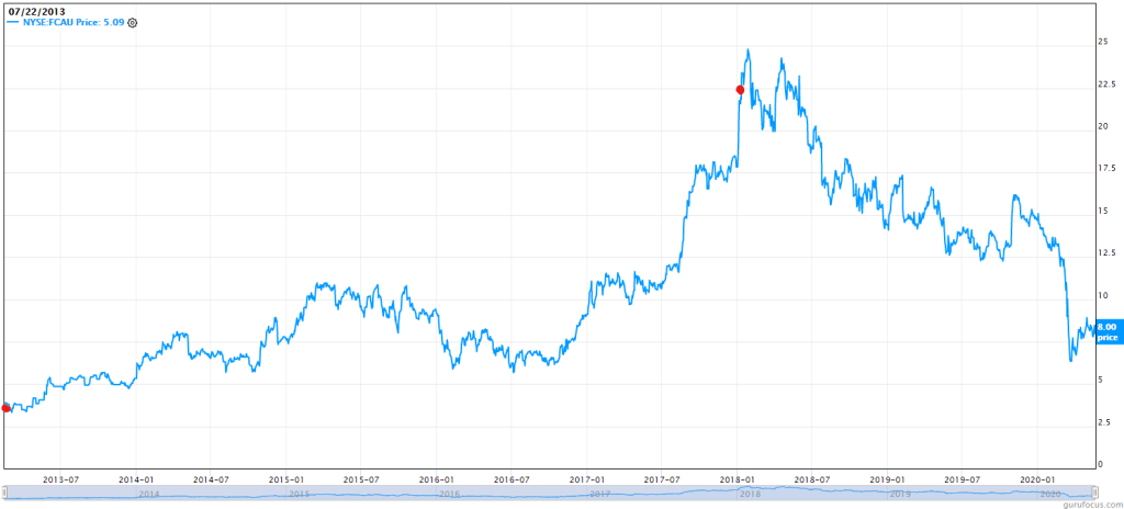 Mohnish found that in 2012, despite the unfavourable nature of the industry, FCAU was unlikely to go bust and its shares were trading at an average price of $4. At the time, the Earnings per Share were $2.22. This puts it at a PE of around 2.