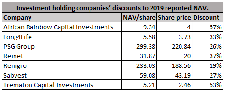 Now, currently South African holding companies are all at a significant discount to the sum of their parts – perhaps due to the Moody’s downgrade and general pessimism towards SA Inc. shares. Perhaps exacerbated by COVID-19 or perhaps there is simply a fascination with tech stocks (which would explain the Naspers/Prosus surge of recent months) and rand hedges. While it is true that management of all companies face difficulties trading in SA at the moment given the medium term uncertainties and prolonged recession, it is also true that whatever the reason for investor’s sentiment, this sentiment creates a lot of opportunity for the wolfish.