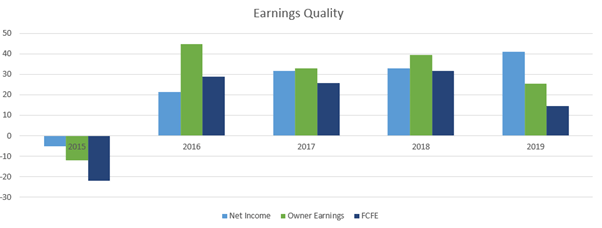 Figure 8 below shows the relationship between net income (EPS), owner earnings, and free cash flow. The more similar they are, the higher the quality of earnings. Here, ALH has had a high quality of earnings for the past 4 years, during which time they have been expanding internationally.