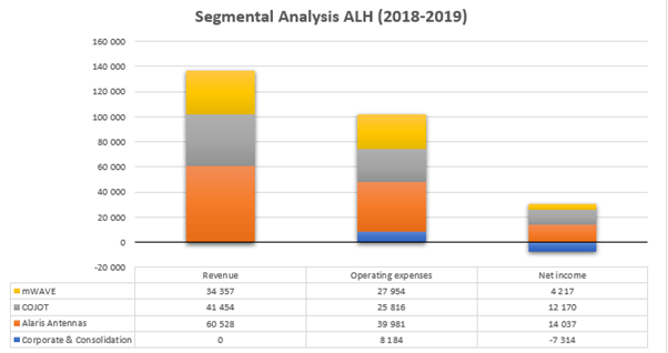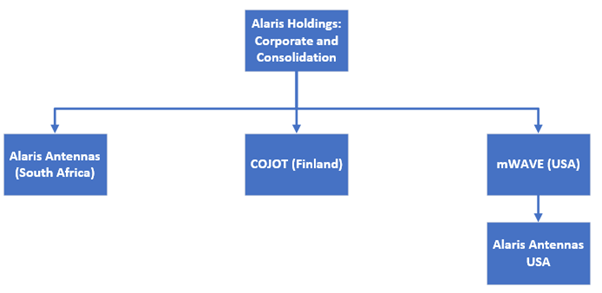 Alaris USA (established in 2019) is the portal through which COJOT and Alaris Antennas market their products to the US market. Both mWAVE and Alaris USA have been integrated into the ERP system of the broader Alaris Holdings group and management expects this integration to yield improved margins for the US segments. All US based clients of COJOT and Alaris Antennas have been handed over to Alaris USA and management expect this business model to increase inter-segmental activities significantly.