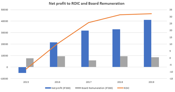 On the topic of management (which is unpacked below), the company is (as almost all our favourite companies) founder led. Further, since October 2018, management have bought R1.15 million worth of stock with an average price of R2.27 per share. Since the last reporting period, management have bought R150 000 (at R1.81 per share average). Further, they have not sold any since June of 2016. As of the company’s 2019 report, directors and associates own 36% of the company.