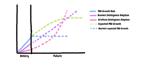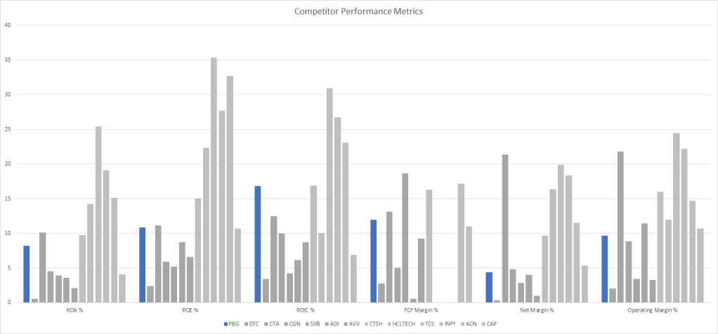 This year, PBG’s return on invested capital increased to 17%. Their breadth of verticals, the developing nature of the data industry and their tech agnosticism all mean they have high education expense requirements. Reinvestment will primarily be into upskilling staff and training new employees. Because theirs is not a product or platform service, the scalability and ability to compound at this 17% ROIC is limited.