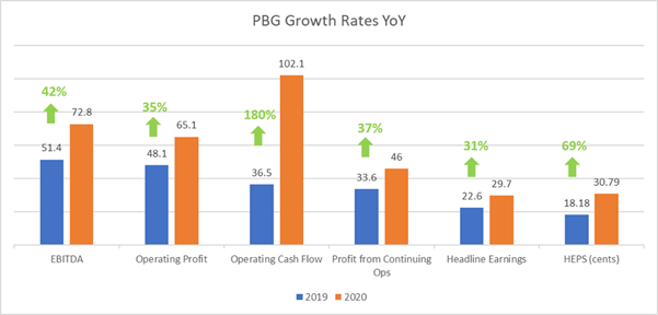In Thorndike’s book The Outsiders he says a trait of quality management is quality capital allocation. PBG’s current ROIC is 17%. Well above average for the JSE market. Figure 23 below – from PBG’s latest results presentation – shows the capital allocation approach PBG took in returning value to shareholders. Over the last year they repurchased undervalued shares, distributed a dividend and experienced a 22% rise in share price. With around 42% of the company being owned by insiders, the inclusion of this slide in their presentation parallels their alignment to shareholder interests.