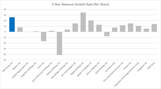 While a rising tide lifts all ships, some ships are better positioned to capitalize on the rising tide. The IT industry’s inherent characteristics–including low barriers to entry, a wide variety of market segments, and large numbers of buyer groups–have made it difficult for a few players to dominate the market. For these reasons, PBT’s focus on data-based insights and consultancy make it more appealing than the local IT product resellers.