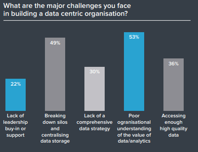 Most challenges to data centricity are organizational: siloed structures or poor understanding. Notably, leadership buy-in is comparatively not an issue (Figure 19). The top-down push for increased adoption as a strategic goal means sustained interest from local companies, despite the organizational challenges.